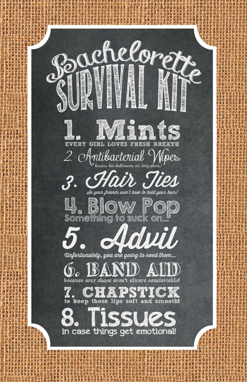 This item is unavailable | Etsy BusyBeeSweetDesigns $3.65 Thankful and Grateful Drawsting Hostess Gift - Wine Bag GracefulGreetingCo $6.54 $7.27 (10% off) Free shipping eligible Survival Kit Bags | Bachelorette Favor Bags Holiday Hangover Party Bags Wedding Welcome Recovery Muslin Goodie Gift Bag Groomsmen Bachelor SweetThymes $1.50 Free shipping eligible 11 Hen Party Survival Kit Ideas | party survival kit, hen ... Nov 3, 2020 - Explore Gillian Cossins's board "Hen Party Survival Kit Ideas", followed by 110 people on Pinterest. See more ideas about party survival kit, hen party, hen party survival kit. Amazon.com: bachelorette party survival kit LoveAtEverySight Bachelorette Survival Kit Labels"Purple"| Personalized, Bachelorette Survival Kit Stickers - Completely Customizable text, Glossy Non-Weatherproof - 3"X2", set of 10 $7.00 $ 7 . 00 $3.50 shipping Personalised Hangover Hen Birthday Party Survival Kit ... You will receive 24 or 48 x Round Self Adhesive Stickers in your choice of Matte or Gloss. 24 Per Sheet Label Size 45mm x 45mm. 48 Per Sheet Label Size 30mm x 30mm. Personalised Hangover Hen Birthday Party Survival Kit Sticker Party Sweet Cone | eBay