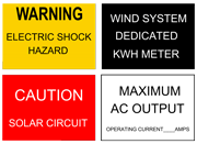 Electrical - Wind Turbine Signs and Labels These signs and labels address safety reminders for workers, warnings to pedestrians and signs to show whether or not you support wind energy. Options include OSHA or ANSI headers, signs with images or just text in varied colors. Choose horizontal or vertical designs with symbols or text