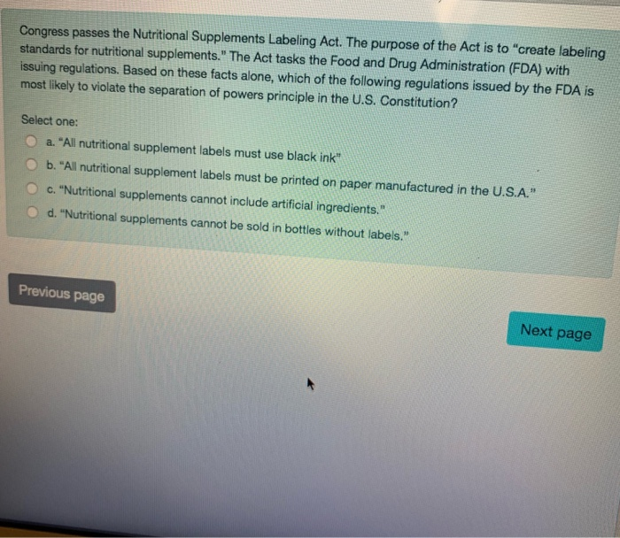 Ch 3 Flashcards | Quizlet Federal restrictions that forbid beer producers from listing the alcohol content of their beer on product labels are unconstitutional. ... According to ____, most of the Constitution's individual rights provisions block only the actions of government bodies, & not private bodies, in cases of violation of rights. a.) independent checks ... US Product Labeling Laws and Regulations - The Bayne Law Group, LLC Whether a product must be labeled depends on its contents and the likelihood that consumers will be exposed to any hazards it presents. To require labeling, a product must first be toxic, corrosive, flammable or combustible, an irritant, or a strong sensitizer, or it must generate pressure through decomposition, heat, or other means. EU - Labeling/Marking Requirements - International Trade Administration According to the Cosmetics Regulation (1223/2009), containers and packaging in certain cases must include: The name, trade name and address, or registered office, of the manufacturer or person responsible for marketing the cosmetic product within the European Union. The nominal contents at the time of packaging (by weight or volume). Food Labeling: When Calories are Constitutional - Rutgers University I think what spooked the D.C. Circuit in the meat labeling context I mentioned is that constitutionalizing this area of the law would call into question "Made in the USA" labels, nutrition labels, fiber labels and many other innocuous labeling requirements we take for granted.